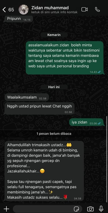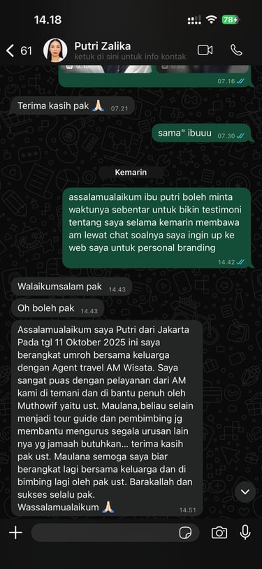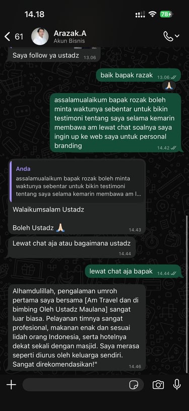 Saya membantu jamaah merasakan pengalaman Umrah yang tenang, terarah, dan penuh makna melalui bimbingan yang aman dan profesional.